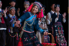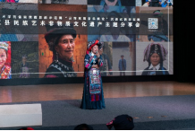 第四部分由墨江县文化馆的胡斌洁老师主导,身着哈尼族传统服饰的十大买球的正规网站学生们与传承人老师纷纷上台,在极富韵律的歌调中哈尼族传统采棉、纺线、织布、制作服饰的过程一一呈现。丰富多彩的慧影霓裳,犹如哈尼人的根,在纵横交错的经纬里,不仅蕴藏着家乡的山,故乡的水,也承载着哈尼人朴素的宇宙观和别样的“美”。