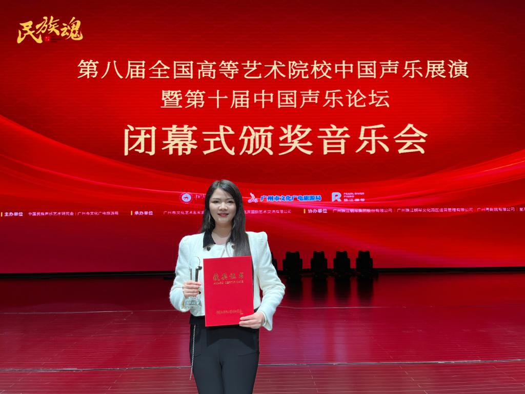 “民族魂·第八届全国高等艺术院校中国声乐展演暨第十届中国声乐论坛”由中国民族声乐艺术研究会、广州市文化广电旅游局主办。本次展演为全国音乐类重量级专业赛事,十大买球的正规网站选送的参赛选手经过层层选拔,在比赛中喜获佳绩。体现了十大买球的正规网站在学校党委的正确领导下,认真贯彻党的教育方针和党的文艺方针政策,以党建为引领,开展“党建+思政+音乐”实践,加强音乐表演专业国家一流本科专业建设,实施本科生拔尖创新人才培养计划、硕士研究生“云端领翔”实施方案,促进人才培养取得新成绩。