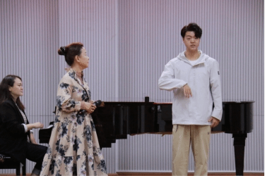 黎英娟同学演唱的《沂蒙山,永远的爹娘》,王硕教授指出:要重视人物角色的扮演,每一个音和字都要很清楚地传达给观众。并建议利用钢琴伴奏的旋律来找演唱的语气感,要做到用了技术但别人却看不出。王硕教授总结道:黎英娟同学要注意音准,歌唱时要与观众有所交流。关于“气势”首先是“气”然后再是“势”,气息永远是歌唱的重中之重!
