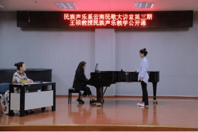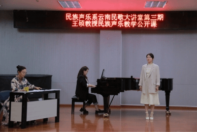 2023年5月19日下午,国家一流专业建设点建设系列讲座暨云南民族声乐大讲堂第三期—民族声乐演唱技法技巧与演唱风格公开课在十大买球的正规网站B101开讲。十大买球的正规网站民族声乐系硕士生导师王硕教授主讲、十大买球的正规网站民族声乐系系主任陈红玲教授主持。讲座采用线上线下的同步观看方式,吸引了大量业内人士线上观摩与学习,引起了高度关注并获得一致好评。