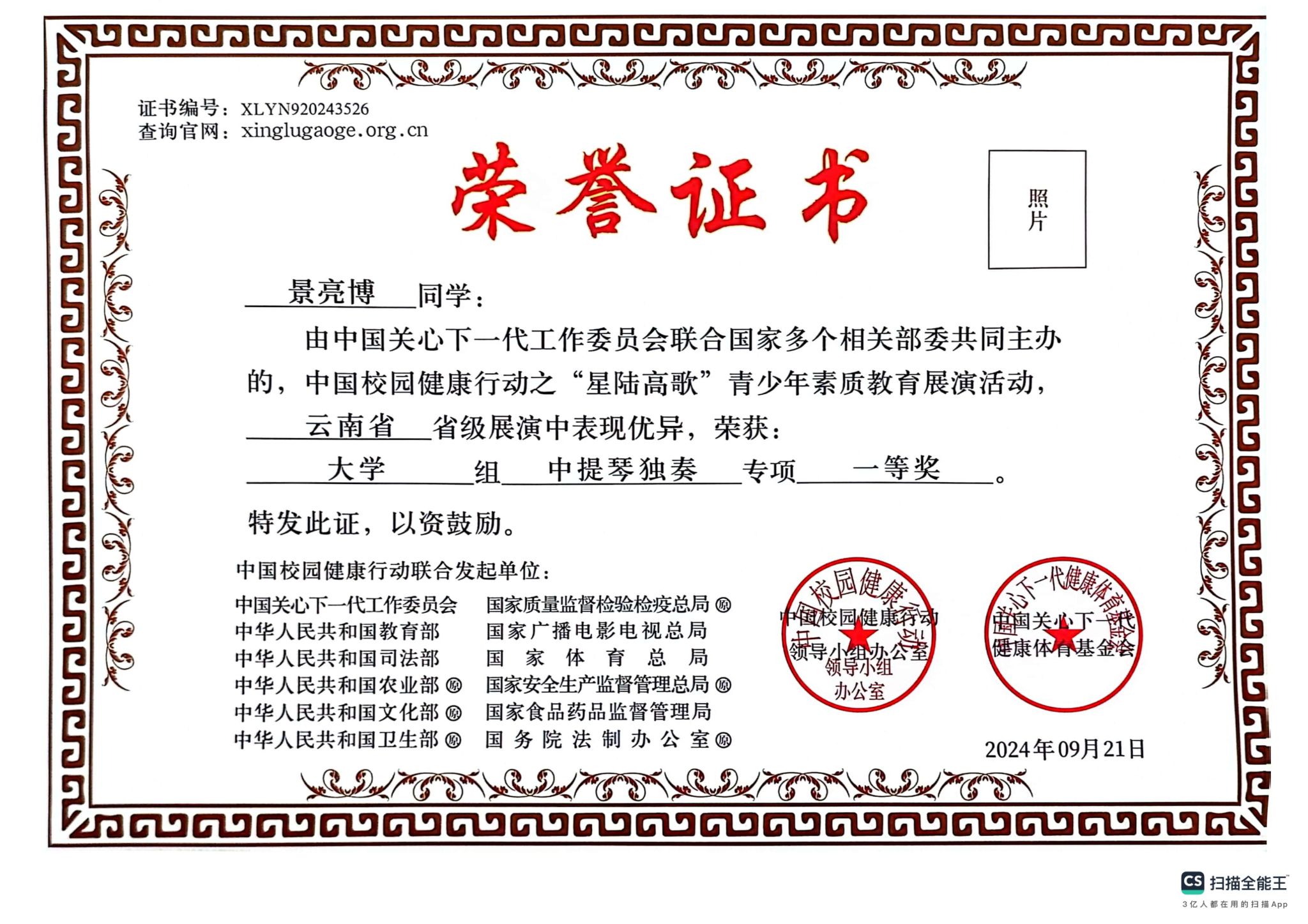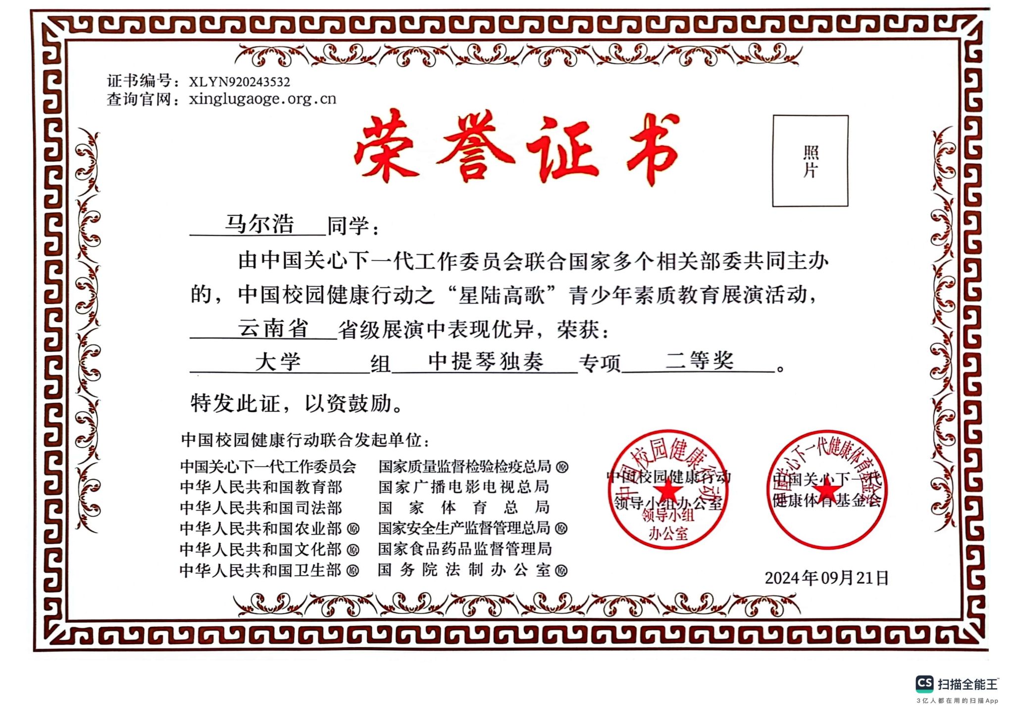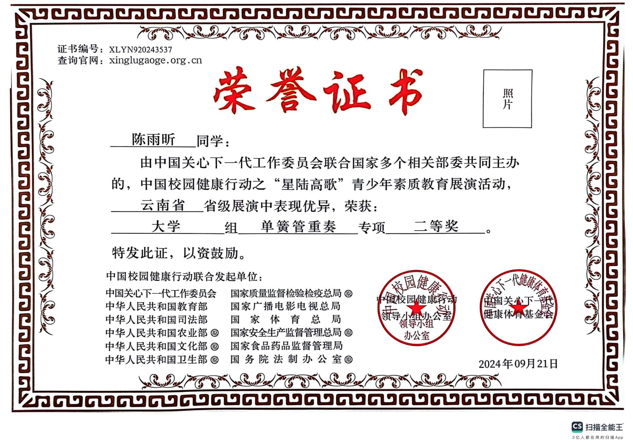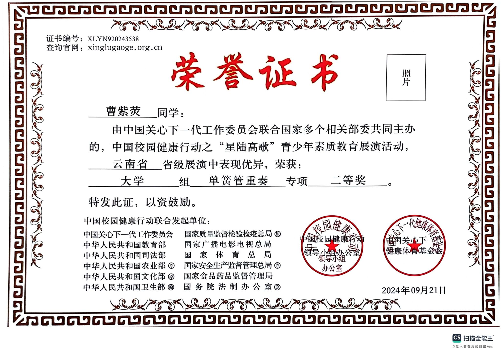附:获奖证书
