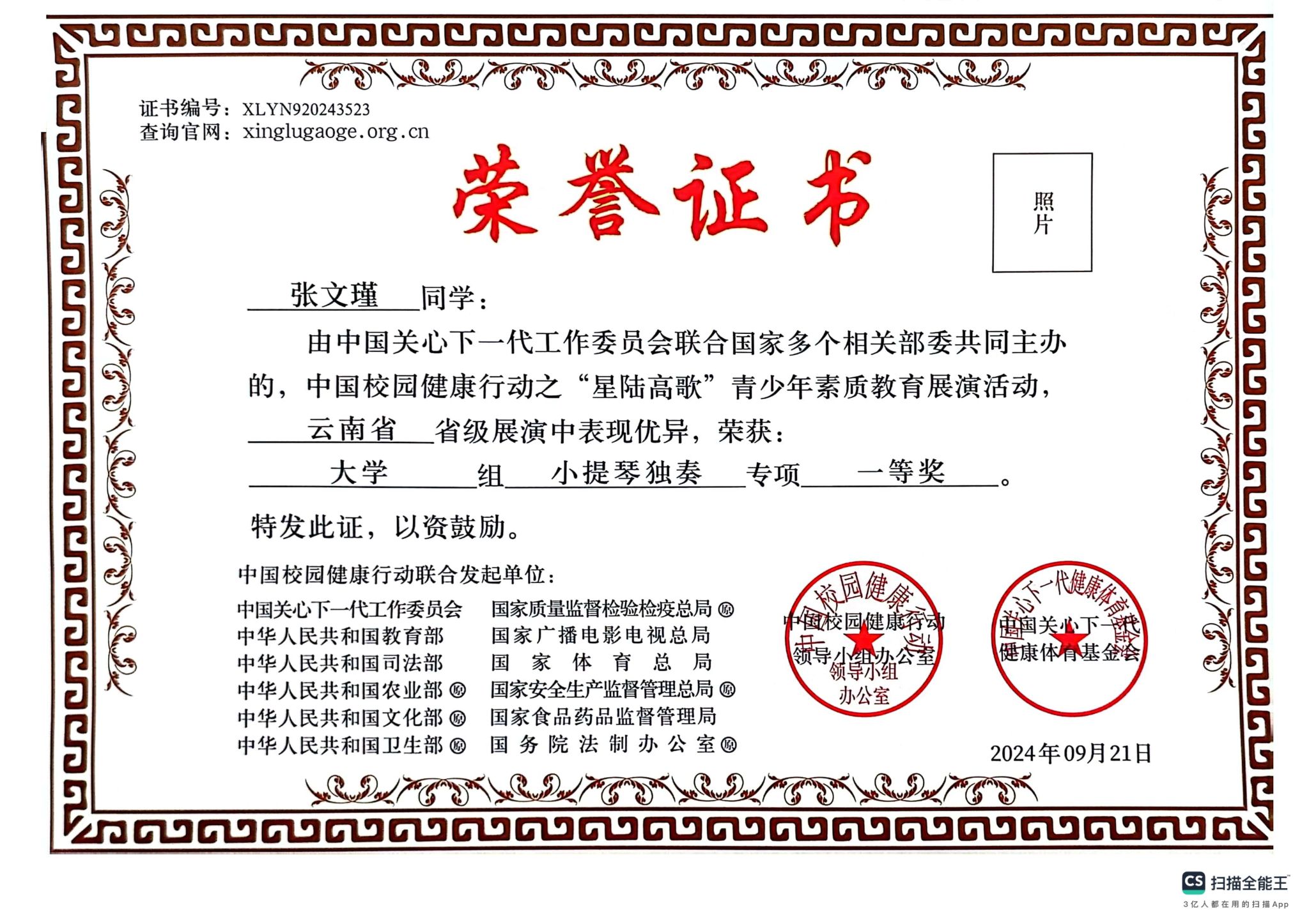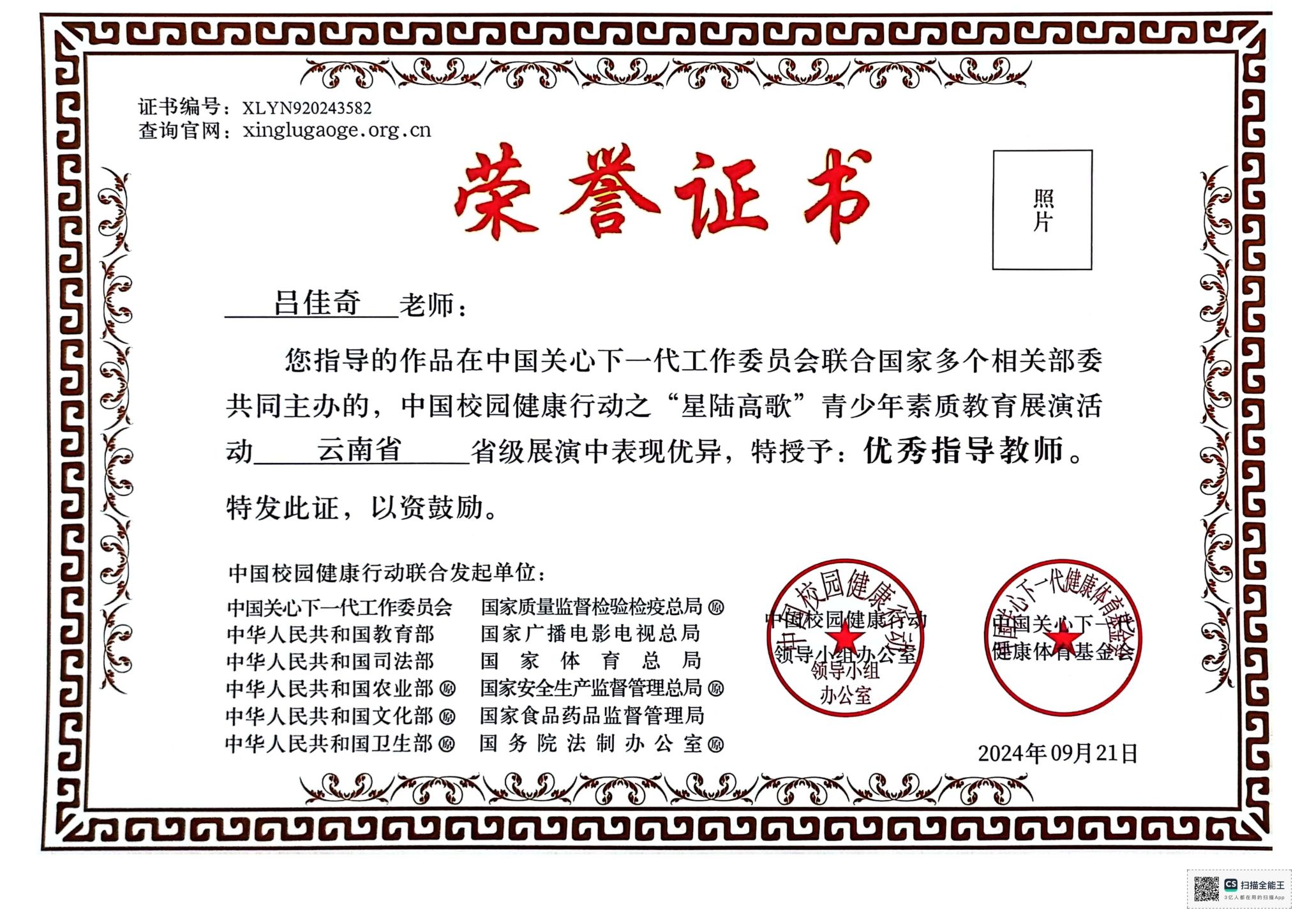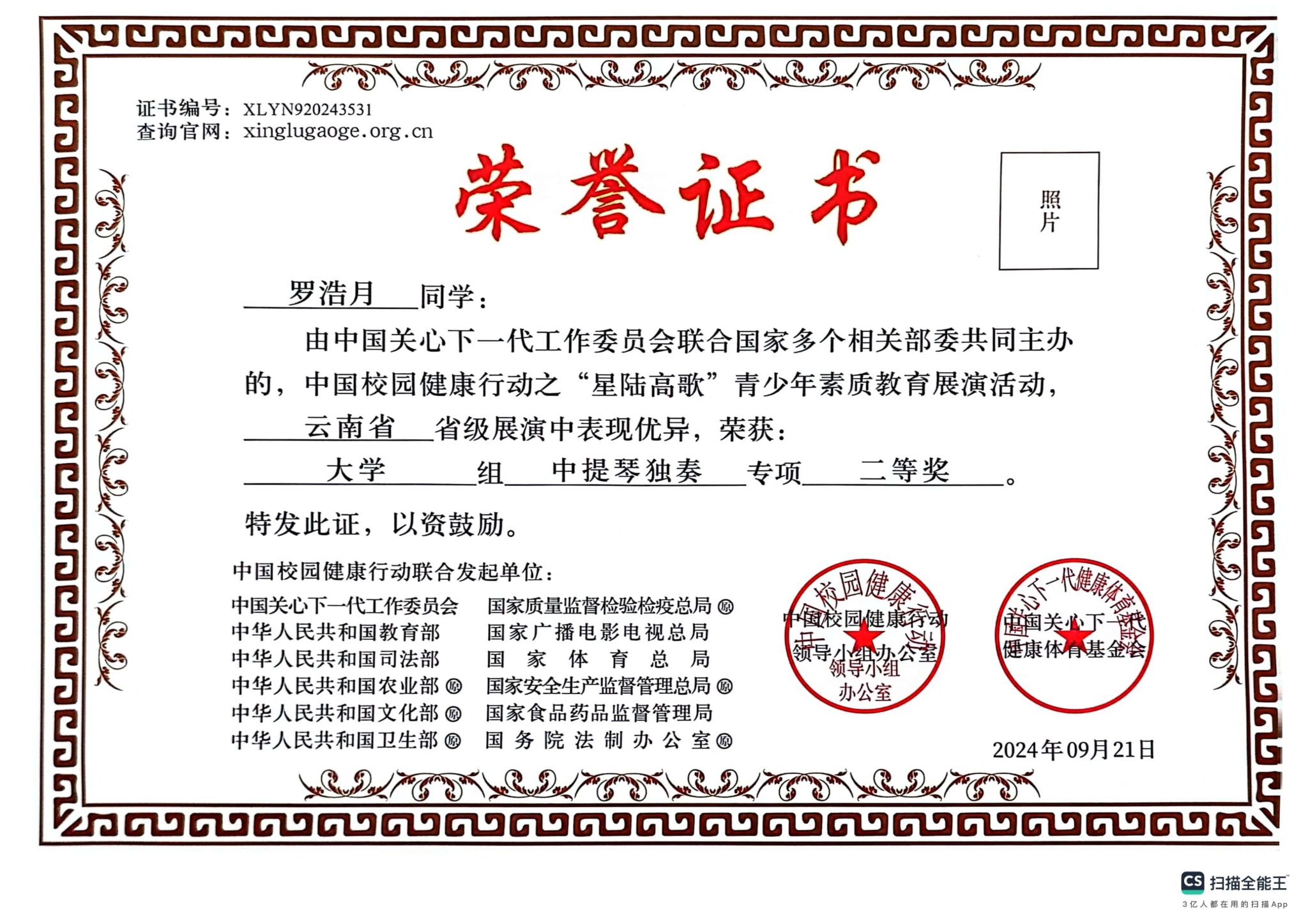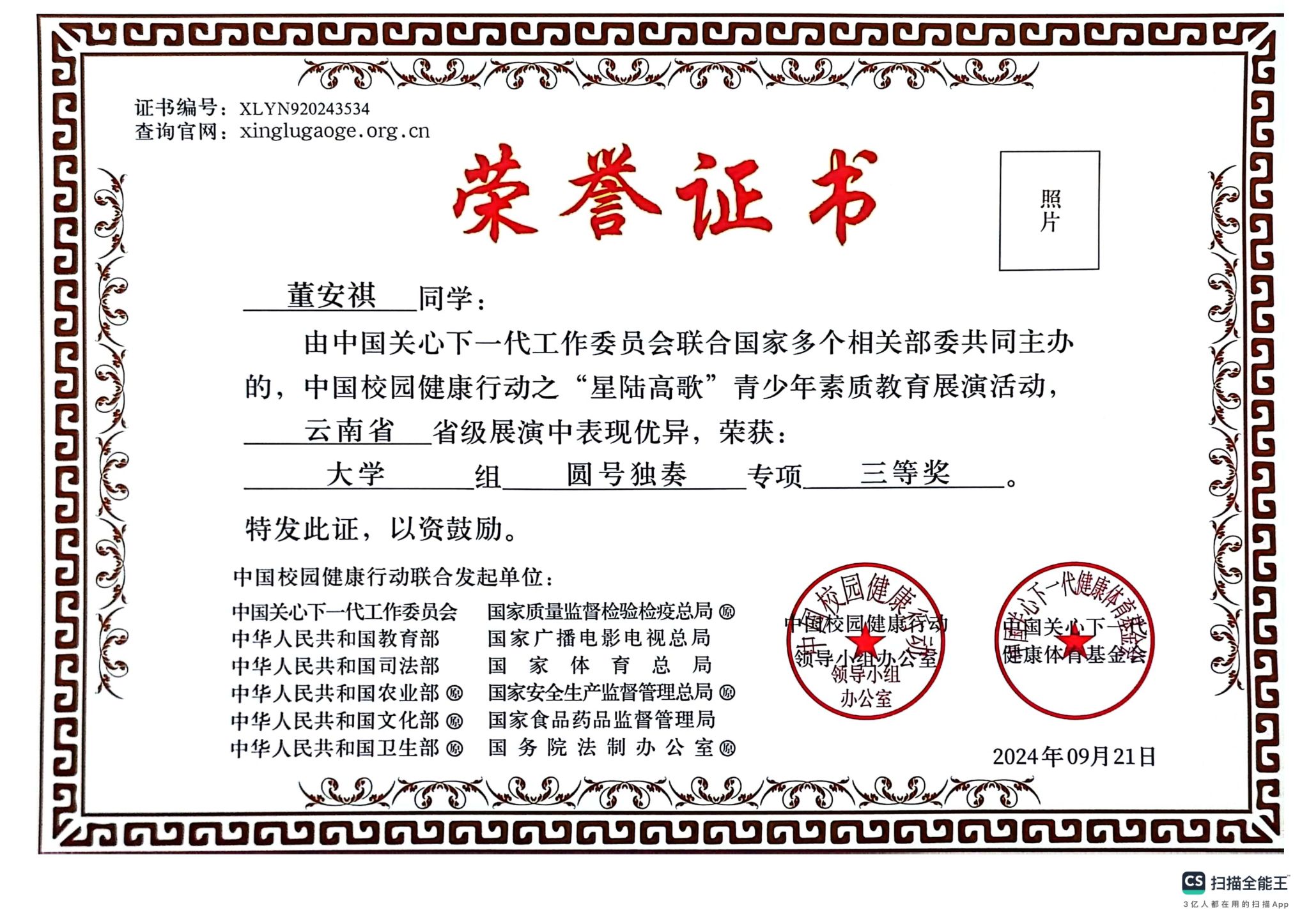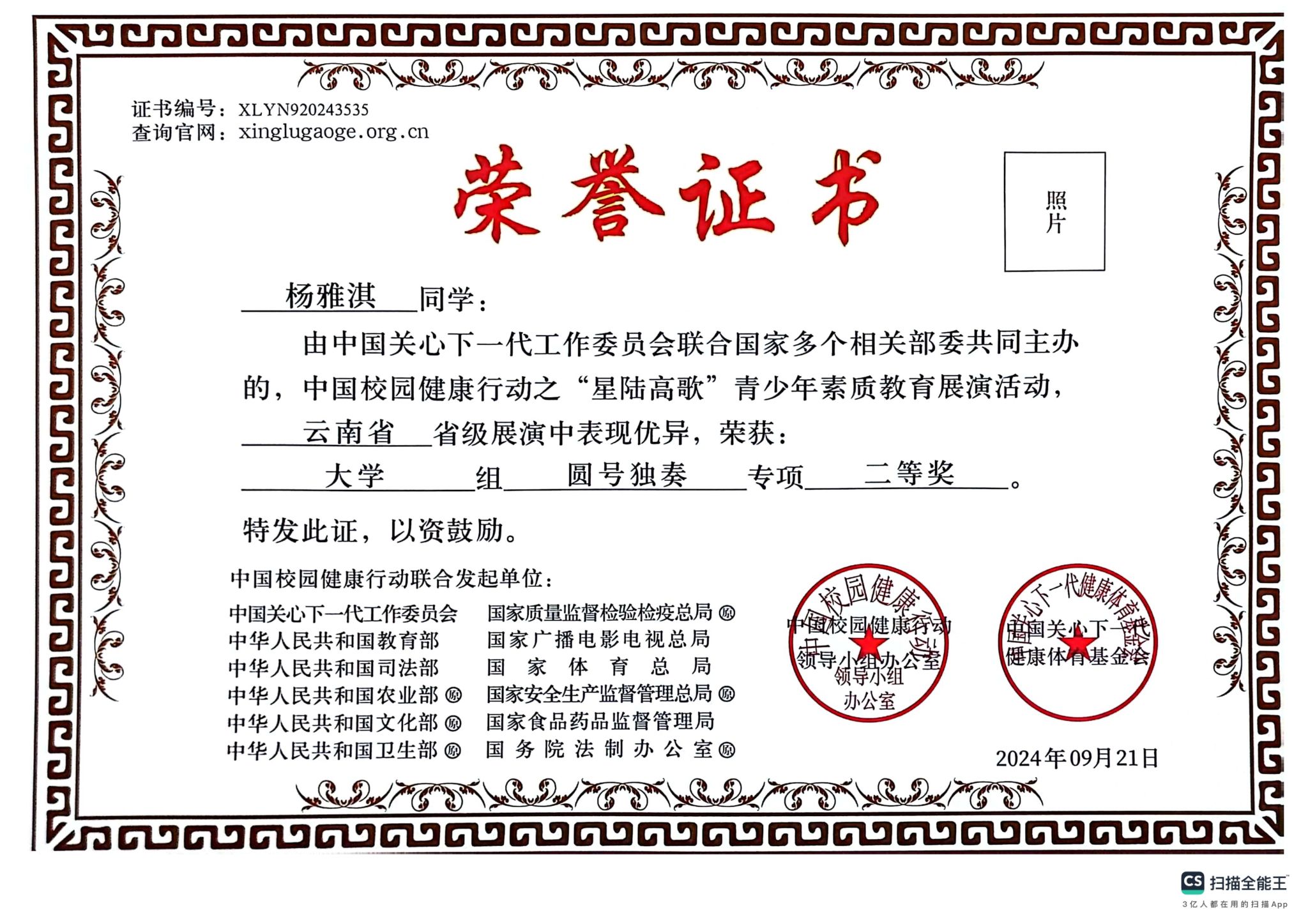 附:获奖证书