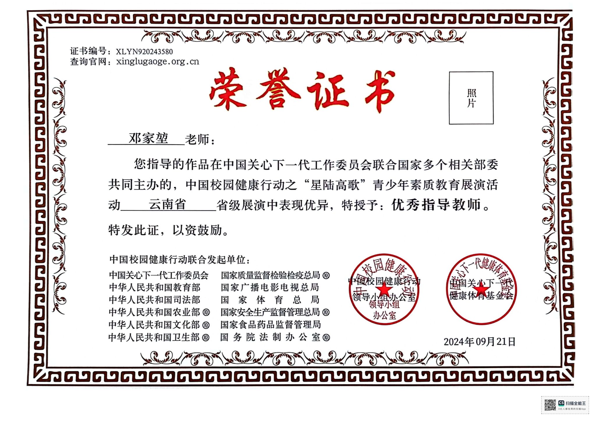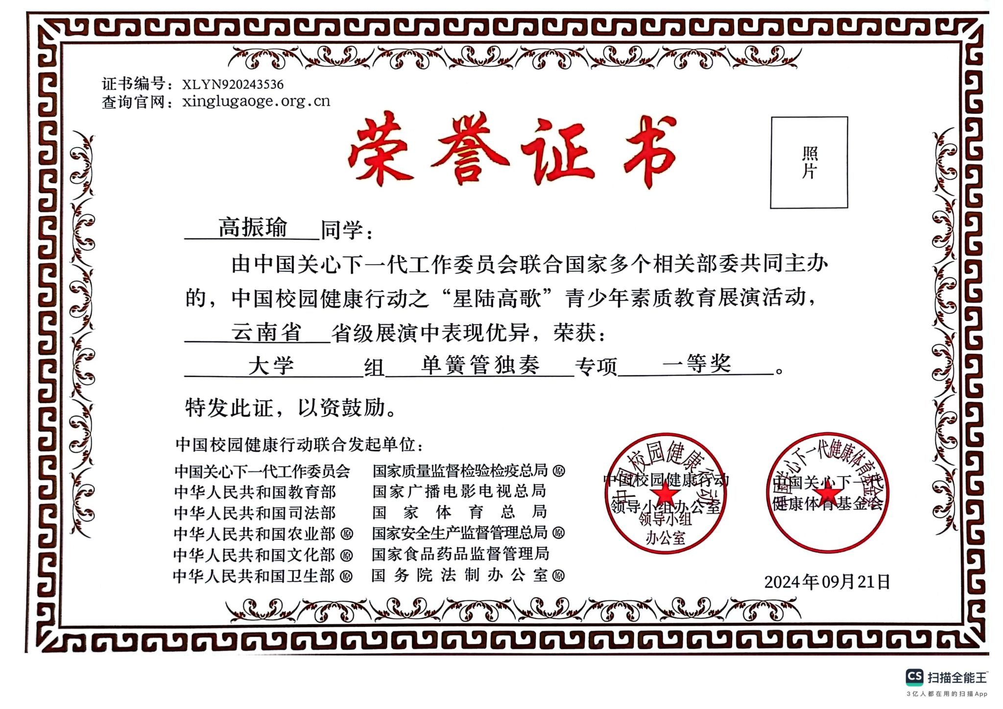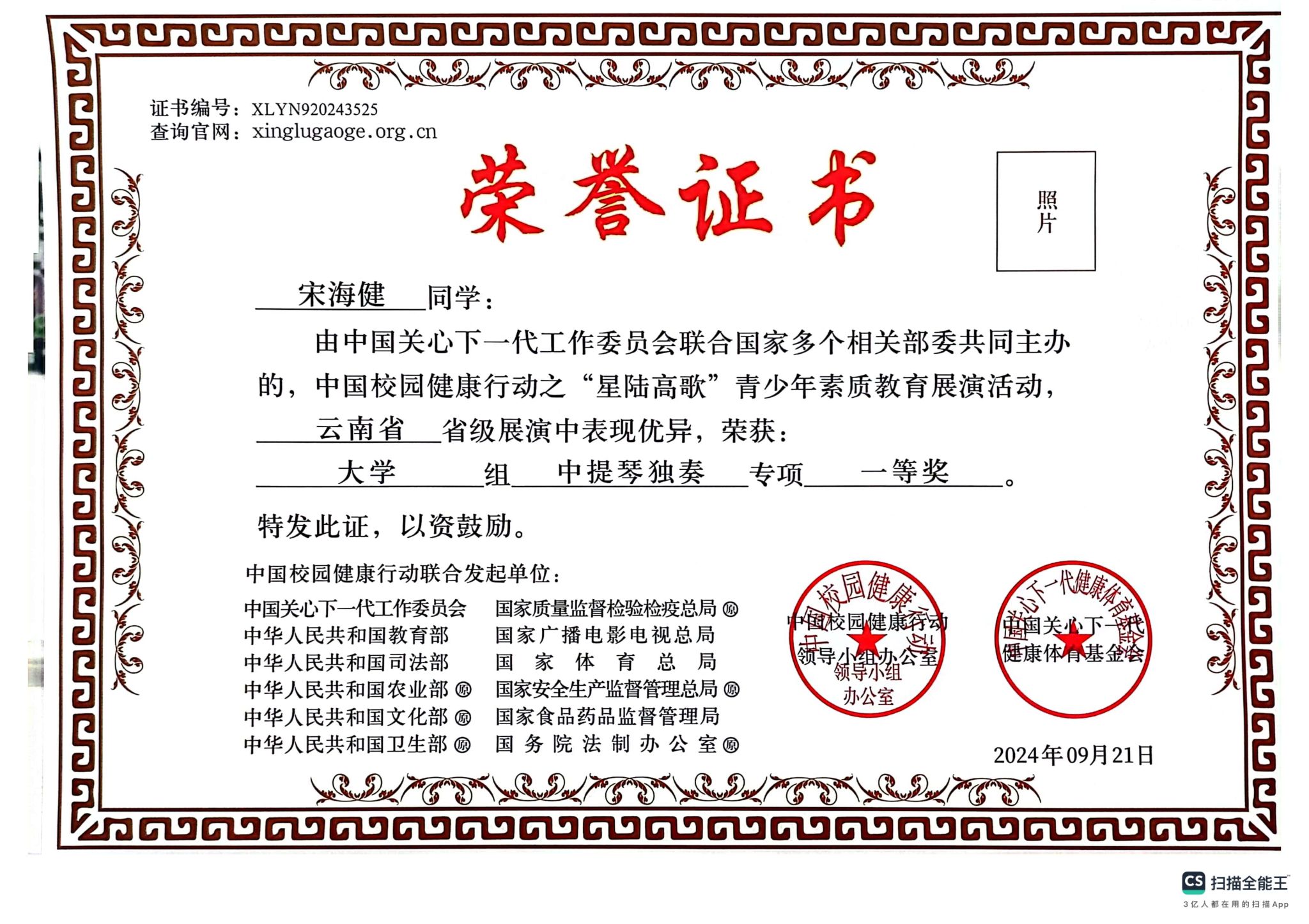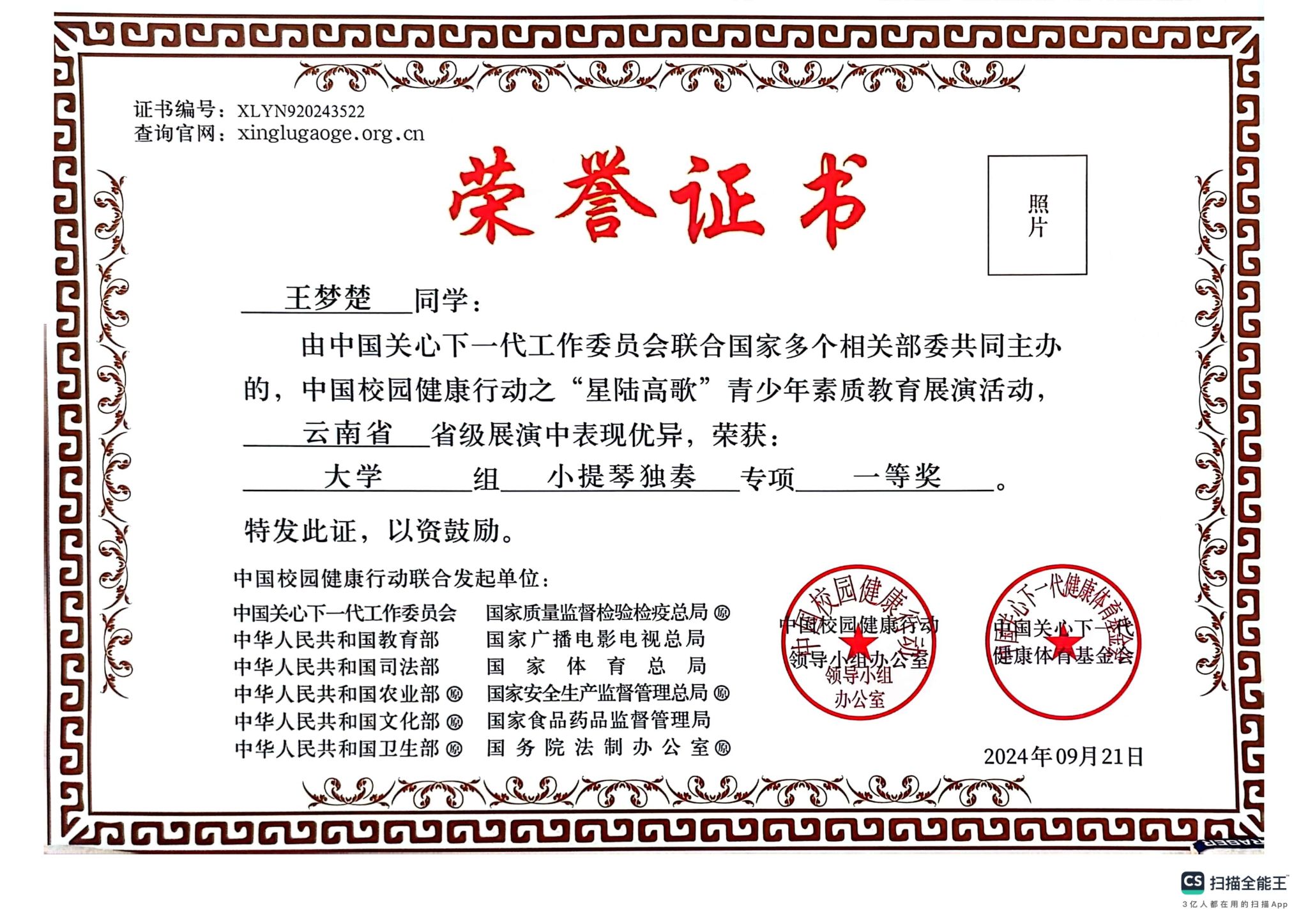 附:获奖证书