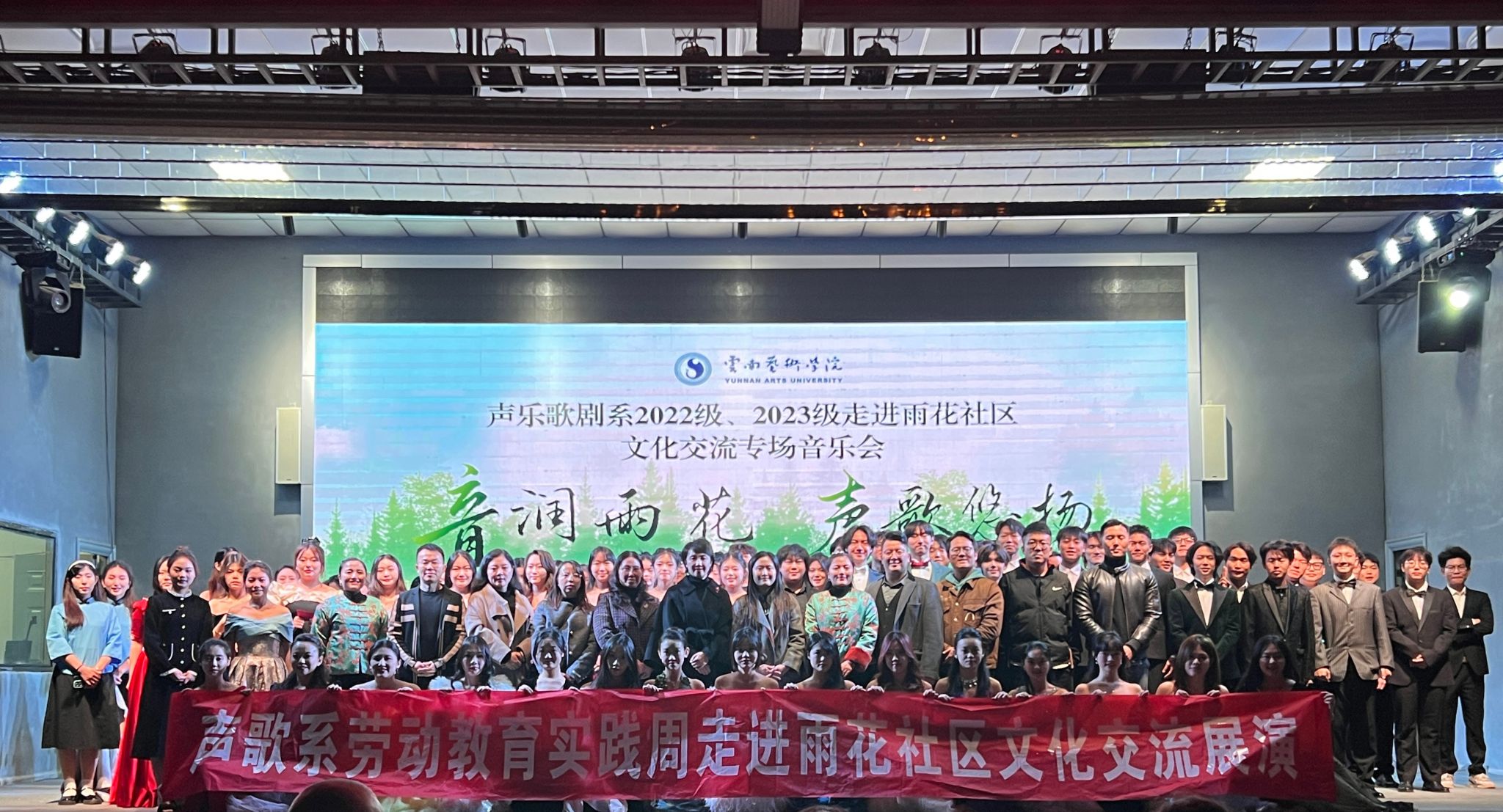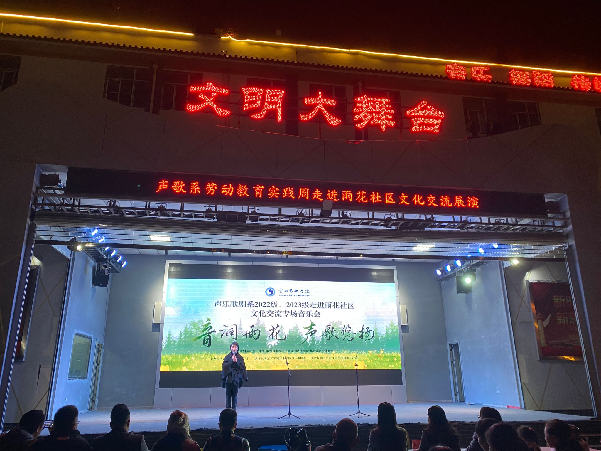 2024年12月4日晚,“音润雨花· 声歌悠扬”十大买球的正规网站声歌系2022级、2023级劳动教育实践周暨“雨润社区,温暖老人心”志愿服务、雨花社区新时代文明实践站2024年“音符之舟·交流启航”主题活动成功举办。此次活动由十大买球的正规网站主办,十大买球的正规网站声乐歌剧系、呈贡区雨花街道雨花社区承办,旨在通过音乐传递爱心与文化,增强学生实践能力,丰富社区文化生活,促进校社交流。