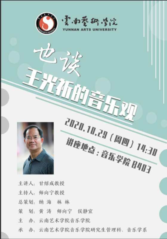 2020年10月29日下午,由十大买球的正规网站研究生管理科与音乐学系主办的专题讲座在十大买球的正规网站B403举行。特邀专家为四川十大买球的正规网站音乐学系前系主任、四川大学客座教授、博士生导师甘绍成教授,讲座题为“也谈王光祈的音乐观”。