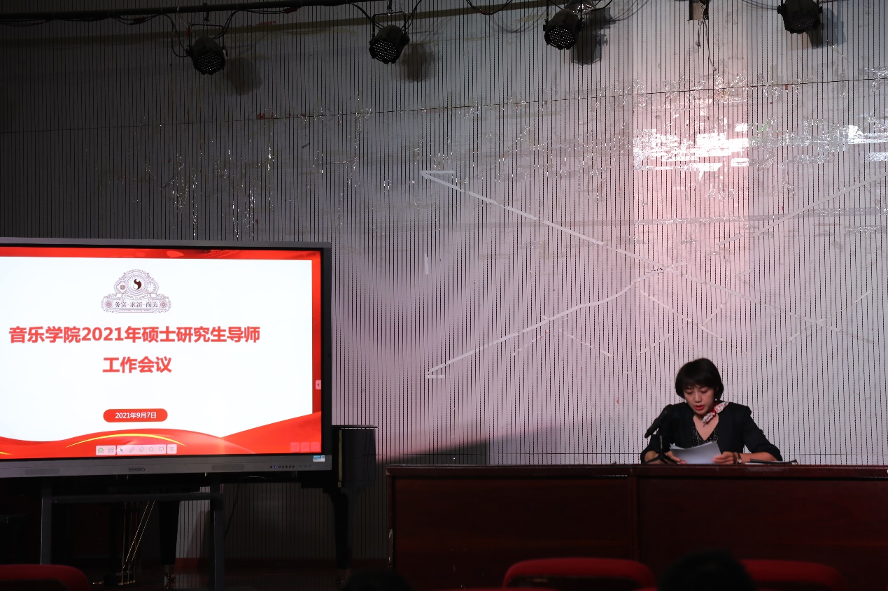 三、研究生管理科做本学期工作安排。由研究生管理科副科长张冰老师对本学期工作进行安排,对本学期教学时间安排、考试时间安排、2022年研究生招生、音乐会评委及教务系统的运用进行了详细的说明和要求。