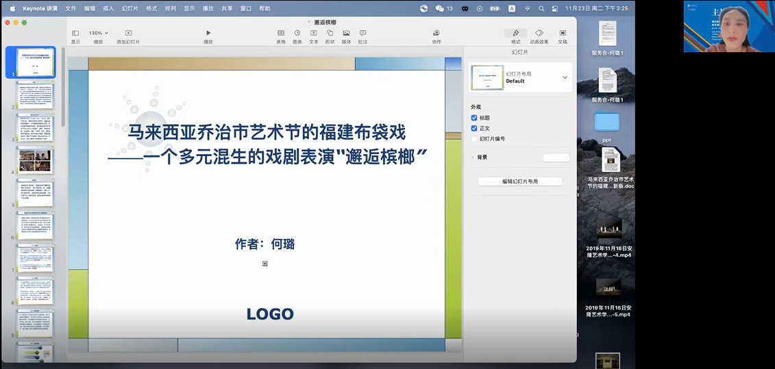 广州南方学院何璐的《马来西亚乔治艺术节的福建布袋戏——一个多元混生的戏剧表演“邂逅槟榔”》,论述了福建布袋戏在槟城的传承与发展现状,对“邂逅槟榔”的五幕进行了文本分析,并对其文化进行了进一步阐释,认为“破浪布袋戏”是当代马来西亚多元混生语境下各族群融合发展一个成功案例。