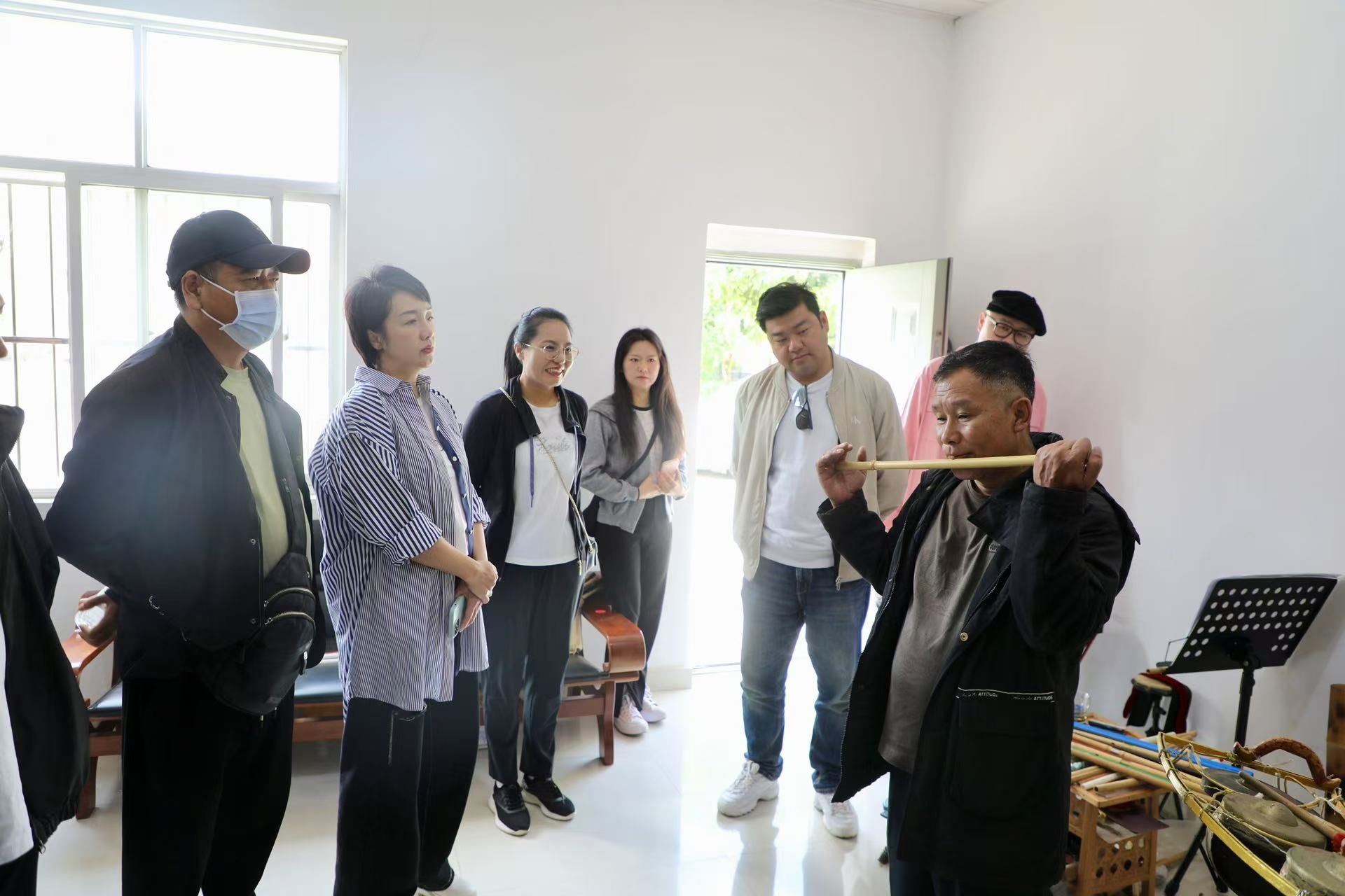 为深入贯彻落实习近平总书记关于文艺创作的重要指示精神,推动高校艺术实践教学与民族文化传承相结合,林林院长一行在德宏州开展了系列采风活动。 此次采风活动的重点单位是德宏州歌舞团及其下属的勐巴娜西乐团·德宏五兄弟。团队成员与乐团成员面对面交流,聆听他们关于乐团发展与民族音乐传承的分享。在与“德宏五兄弟”的互动中,师生们深刻体会到了当地艺术家在创作中对于民族文化的守护与创新精神。