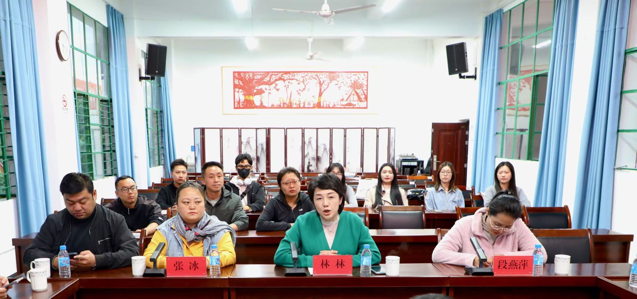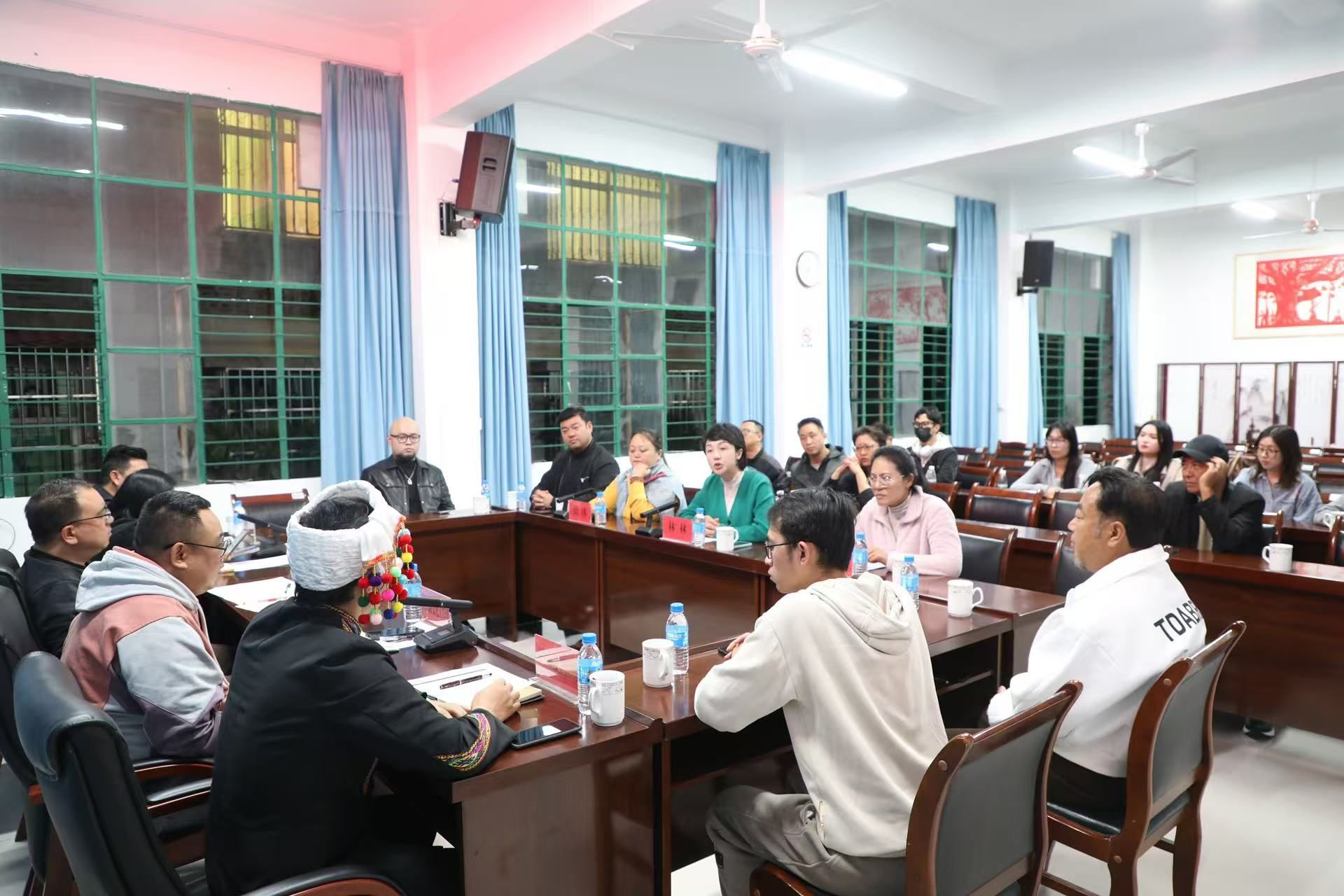 座谈会上,林林院长一行与德宏州文旅局副局长、艺术科科长及文化艺术团副团长等领导深入探讨了艺术人才培养、毕业生就业以及地方剧目等文化艺术保护与研究等议题。会议围绕景颇族和傣族文化的保存、传承与发展展开了详细讨论,双方就如何通过合作推动傣剧及其他地方文化的传承与发展达成了共识。