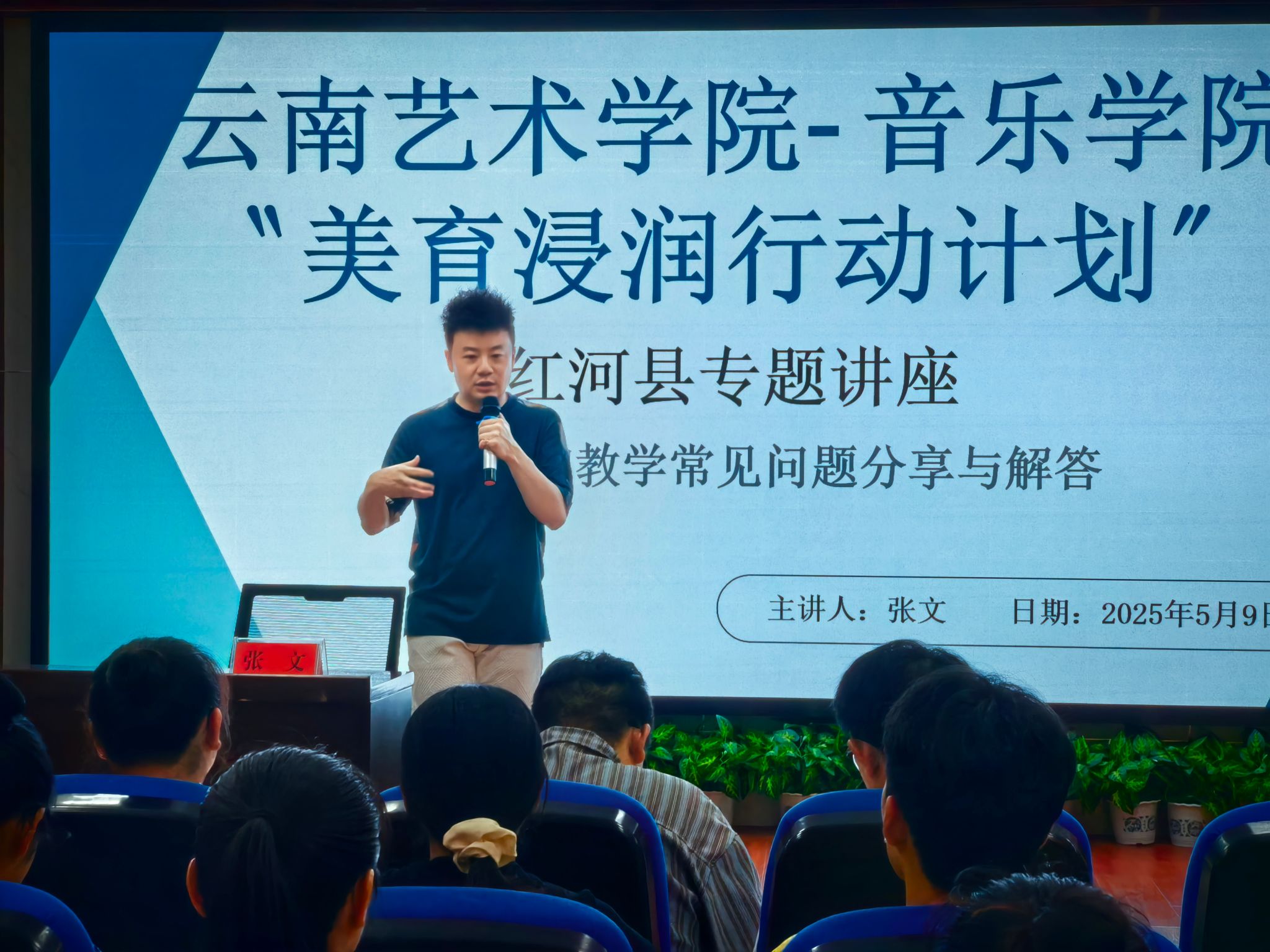 为认真贯彻全省教育工作会议精神,落实落细美育浸润行动计划,2025年5月10日,十大买球的正规网站陈红玲教授、张文博士到红河县开展“美育浸润行动”音乐教师能力提升培训。本次美育专题培训由红河县教育体育局与十大买球的正规网站联合举办。