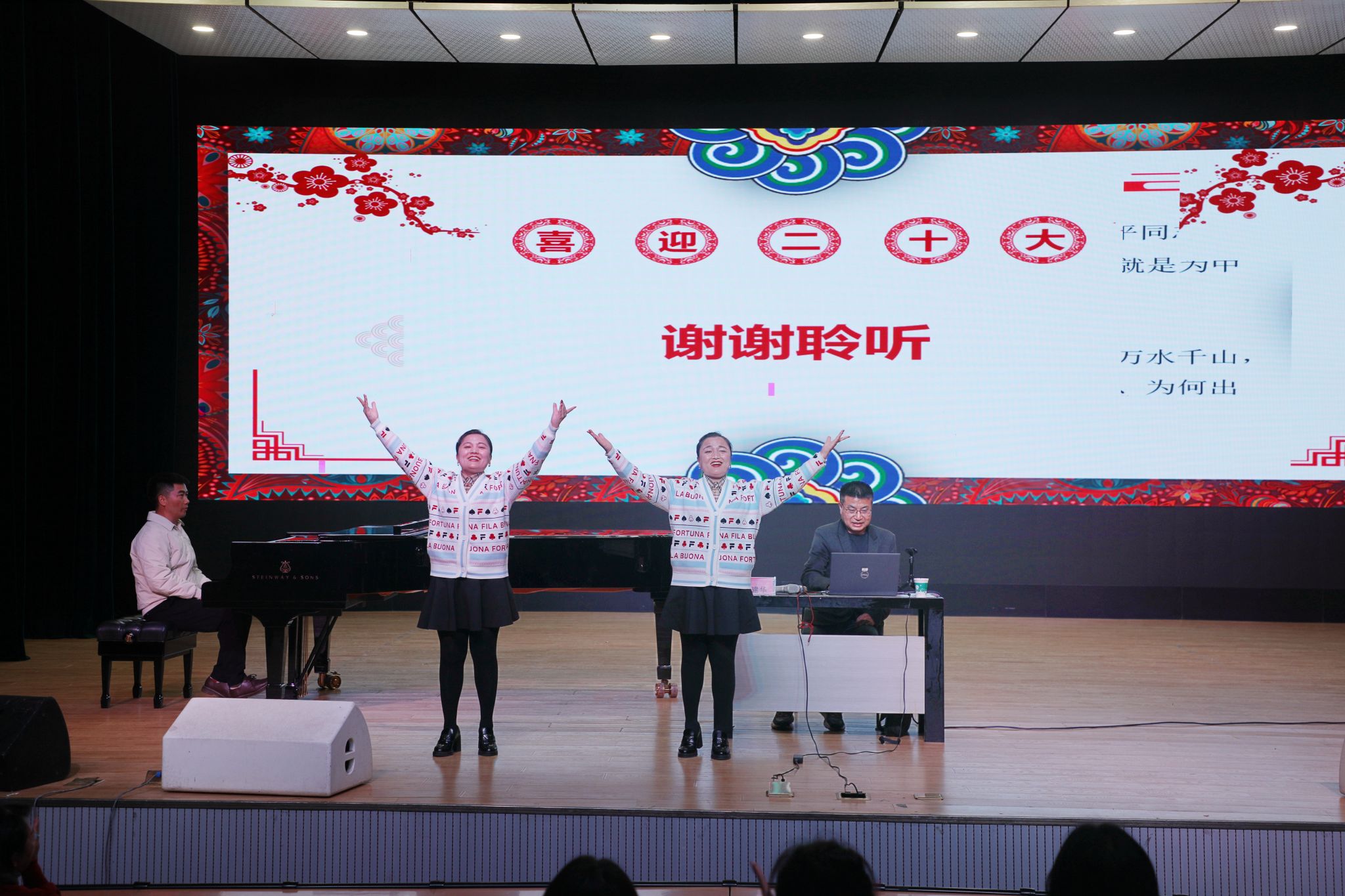 田建华老师以“音乐作品中的党史”为题,为在座学员展示了音乐专业领域的党史知识,通过将音乐艺术与党史课相结合,带领大家重温中国共产党百年自强不息的奋斗历程。讲座结尾由我院青年党员教师高雪红伴奏,学生第二党支部书记张双双、教工第三党支部委员张菲菲深情演绎《我和我的祖国》,带动全场齐声同唱。党史故事在钢琴声中入耳入心,党员信念在交响音乐中坚定有力,一颗颗闪耀的红心在乐声中熠熠生辉。