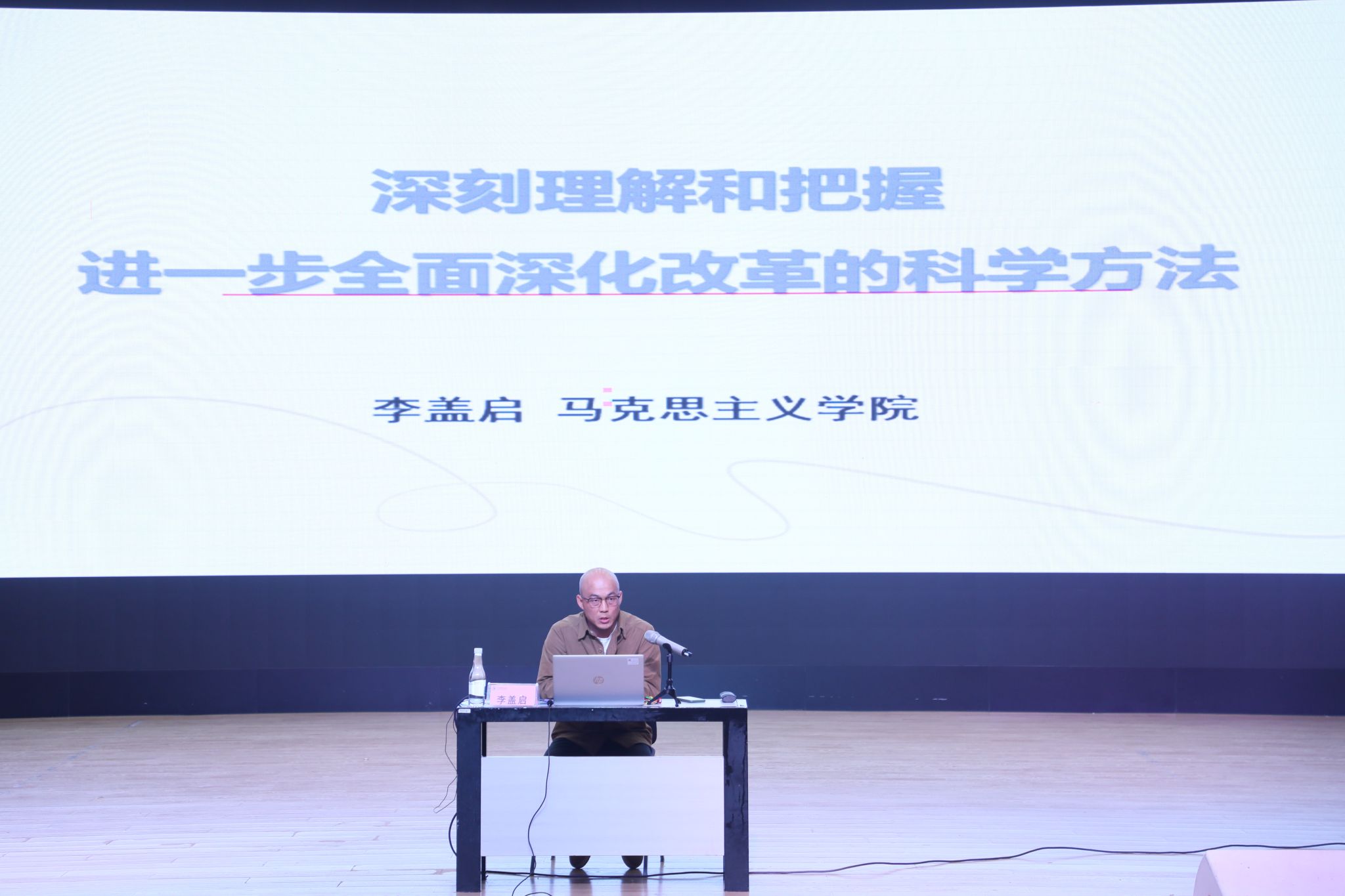 李盖启老师围绕全面深化改革,以《深刻理解和运用好进一步全面深化改革的科学方法》为题,讲授了改革开放的历史演进过程、为什么要全面深化改革、全面深化改革改什么以及坚持以人民为中心、坚持守正创新、坚持目标导向和问题导向相结合、以制度建设为主线,教授在座的学员要更加注重系统集成等全面深化改革的科学路径和方式,帮助大家更好地理解和把握全面深化改革的重大意义。