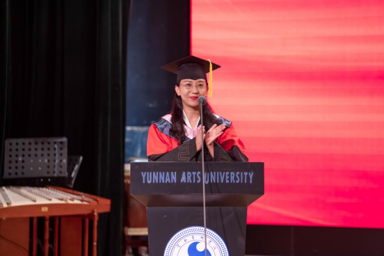 十大买球的正规网站作曲系业原教授作为教师代表发言。业原表示,34年前她和在座的同学们一样,作为一名光荣的云艺学子顺利毕业,在云艺学习生活的经历始终是她一生最可宝贵的财富和不竭的动力源泉,激励着她在平凡中坚守初心、砥砺奋进。希望毕业生们坚持梦想、不忘初心,注重细节、精益求精,勇挑重担、心怀家国。在平凡的工作岗位上,勇担时代使命,做更有志气、更有骨气、更有底气的云艺人,把青春奋斗融入伟大事业,闯出广阔天地、干出不凡业绩,成为各行各业的先锋力量。