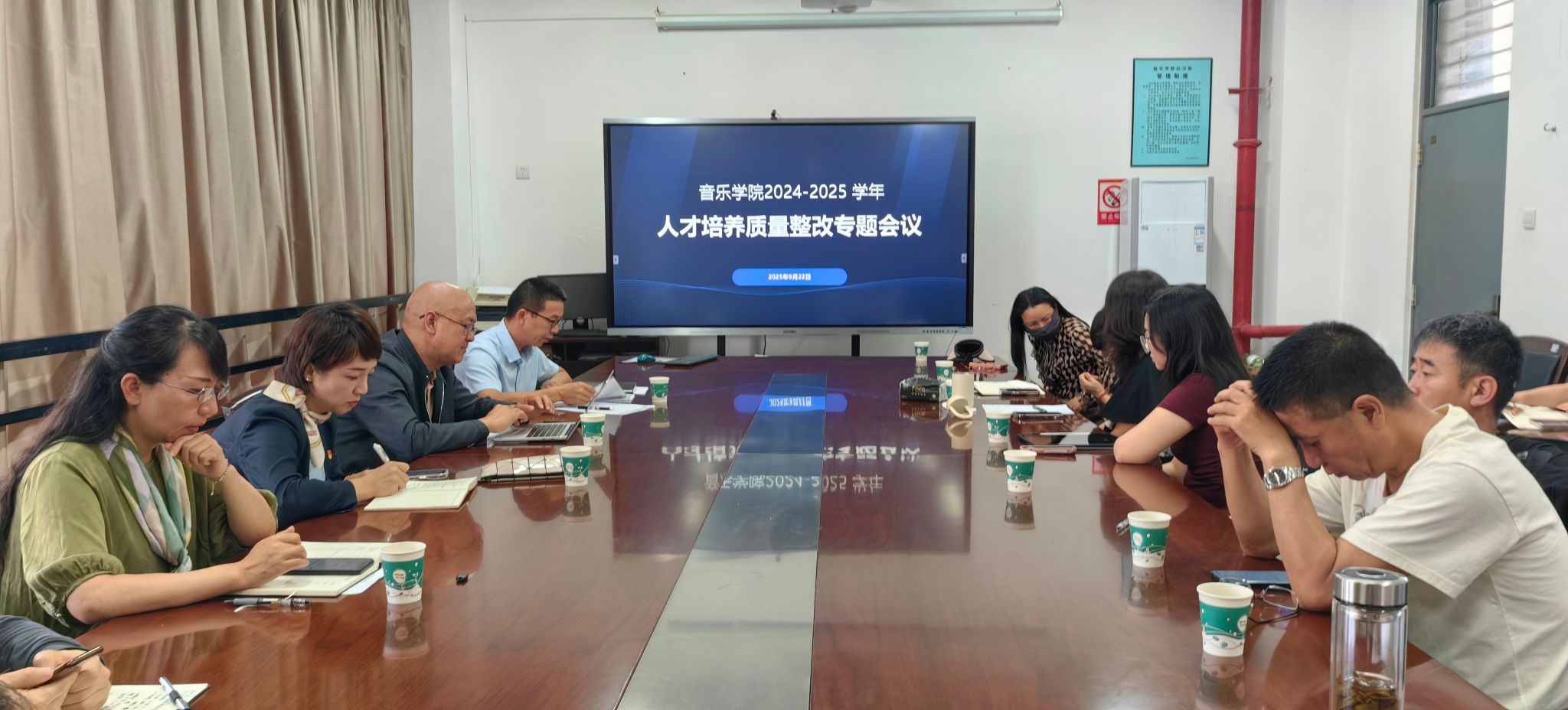 2025年9月22日下午,十大买球的正规网站在音乐楼A301会议室召开了2024-2025学年人才培养质量整改专题会议,会议由十大买球的正规网站副院长侯静宜主持,十大买球的正规网站党政领导班子、各系系主任、专业负责人、教学管理科科长、学生管理科科长、教师代表及学生代表参加了会议。