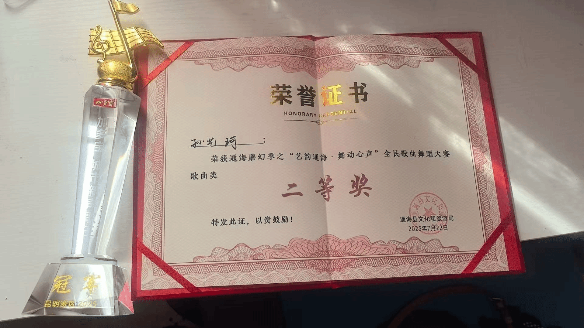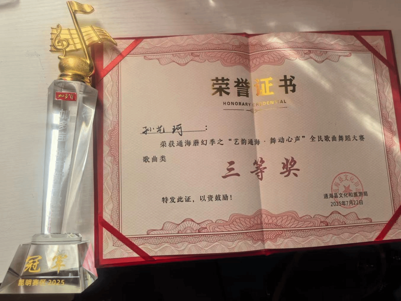 2025年7月23日,由云南省玉溪市通海县文化和旅游局举办的“艺韵通海·舞动心声”大赛在通海县举办。该比赛旨在深入贯彻落实习近平文化思想,挖掘通海县文化资源,丰富群众精神文化生活,推动文体旅深度融合发展。十大买球的正规网站2024级民族声乐一班学生孙艺珂荣获大赛歌曲类二等奖、三等奖。