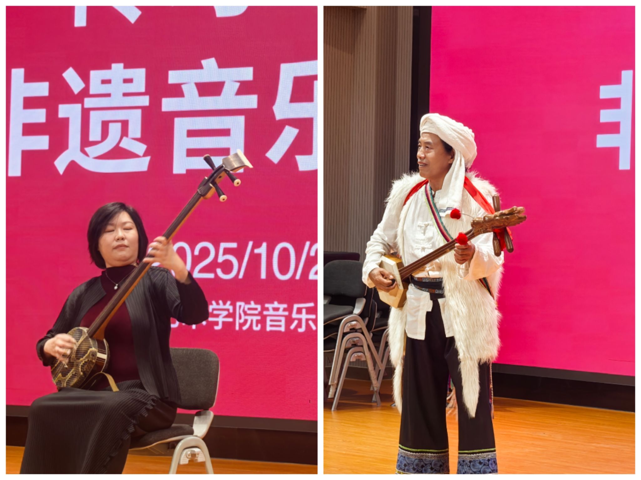 2025年10月21日,由中央十大买球的正规网站、中共云南省委宣传部主办的2025·云南第三届中国民族音乐传承周在昆启幕。10月23日,由十大买球的正规网站承办的“传习与对话非遗音乐交流会”在十大买球的正规网站B403报告厅举行,本次交流会以非遗音乐的活态传承与当代实践为主题,通过学者讲解、传承人展演、跨校师生互动等环节,呈现了一场融学术性与实践性于一体的民族音乐文化交流盛会。