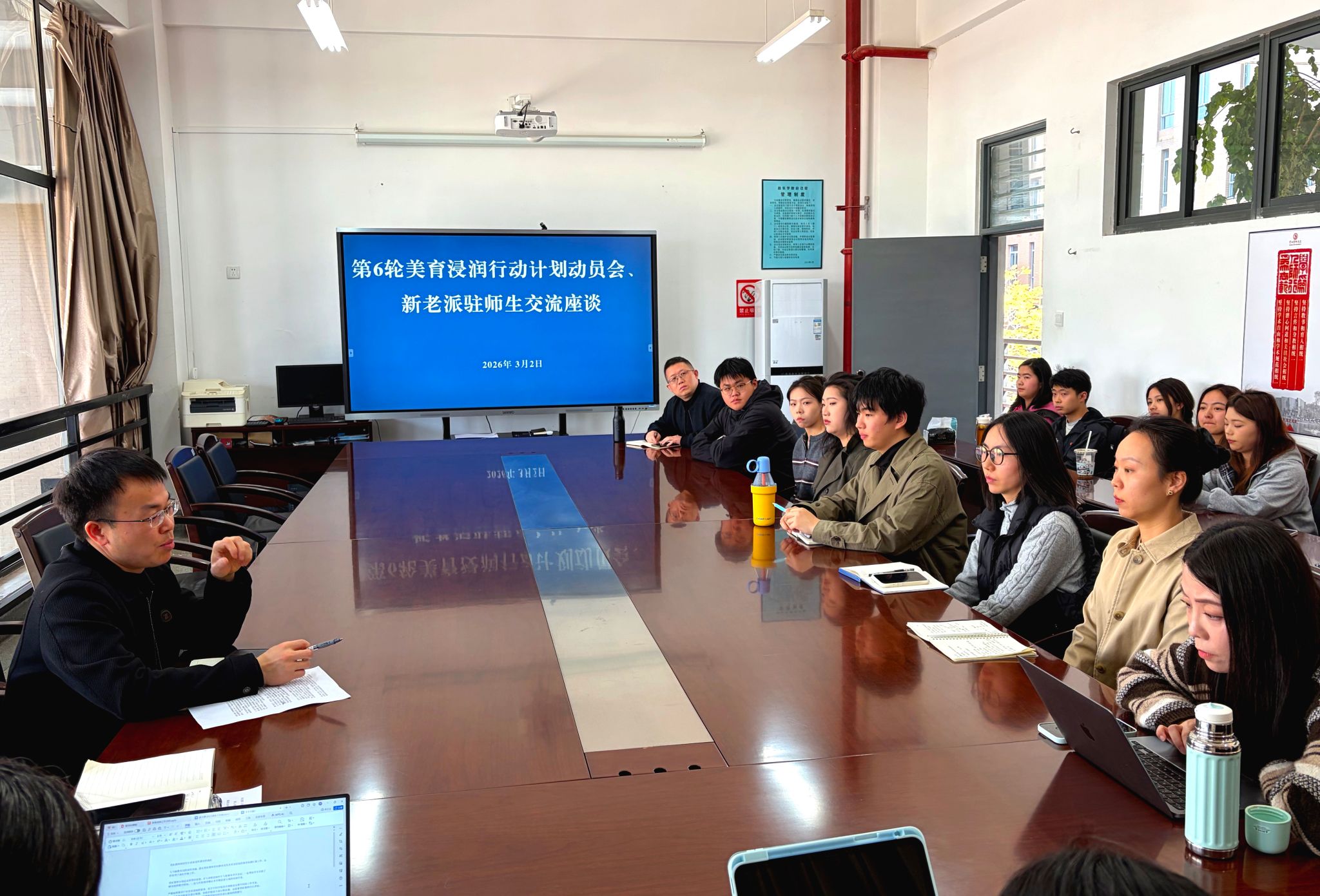 2026年3月2日13:30,十大买球的正规网站在A301会议室召开第6轮美育浸润行动计划动员会暨新老派驻师生交流座谈会。本次第6轮美育浸润行动中,学院将继续派驻师生前往富宁县、红河县开展美育浸润工作,学院领导、新一批赴两地开展浸润工作的派驻师生及往届派驻两地的师生代表参会。